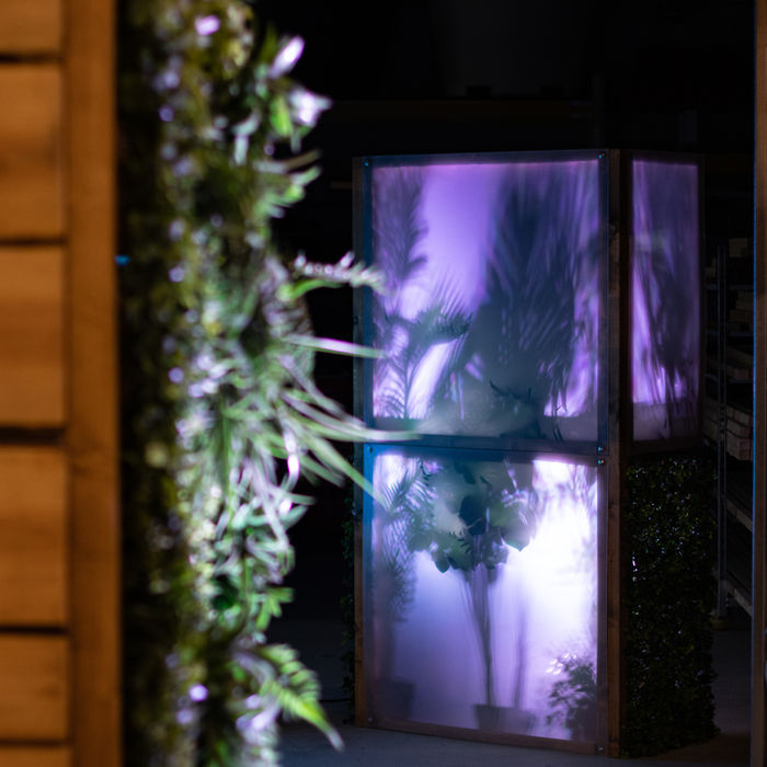 Speel met sfeerlichten, LED-Tubes en Tri parren in combinatie met kunstplanten voor een abstract of vervreemdend effect.